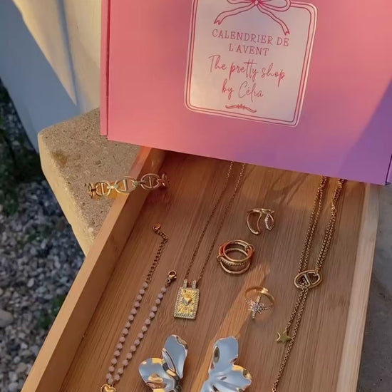 Découvrez notre Calendrier de l'Avent The Pretty Shop By Célia, rempli de 12 bijoux en acier inoxydable à découvrir chaque jour, parfait pour égayer votre mois de décembre.