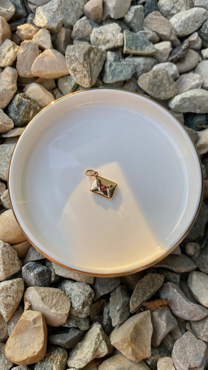 Charm Enveloppe en acier inoxydable plaqué or avec strass rouge.