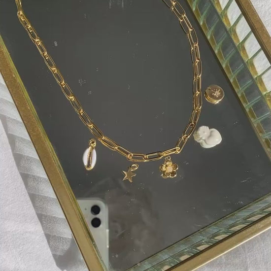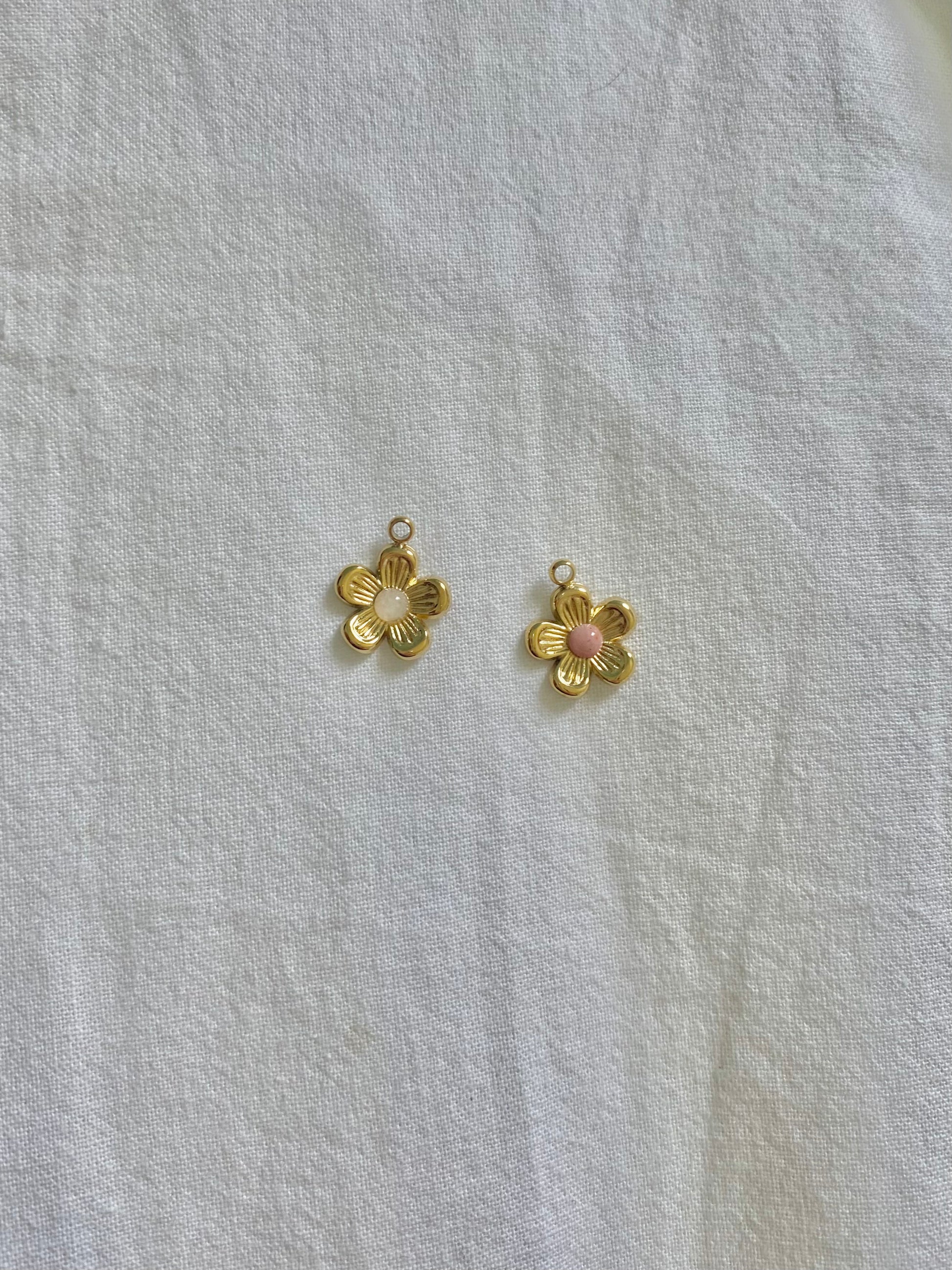 Charm Flora en acier inoxydable avec perle rose ou blanche