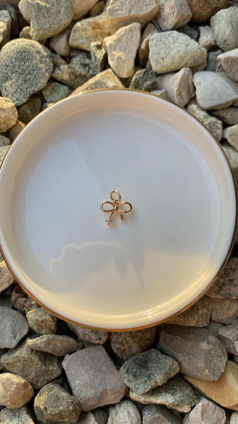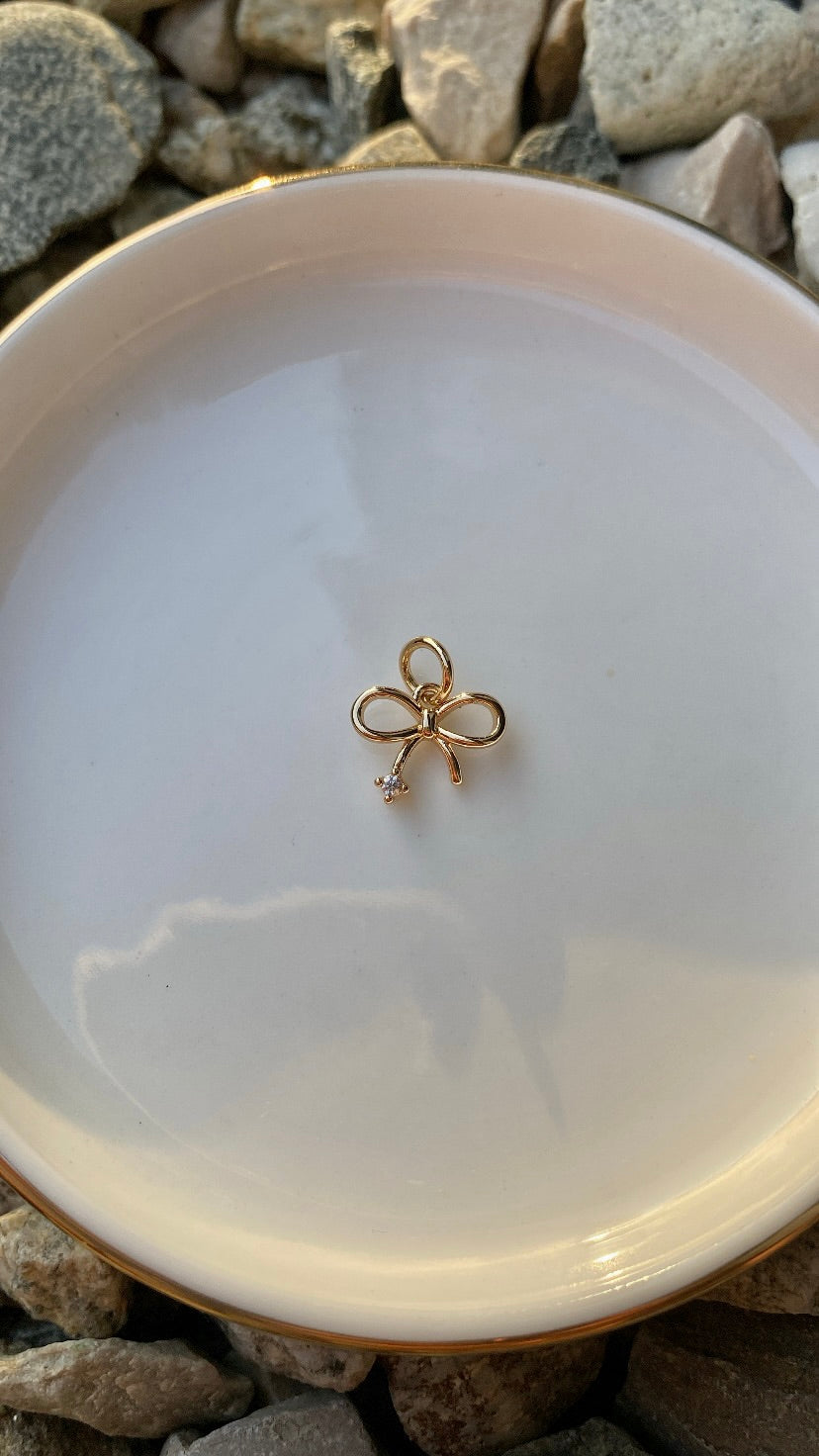 Charm Shinny Coquette en acier inoxydable plaqué or avec strass.