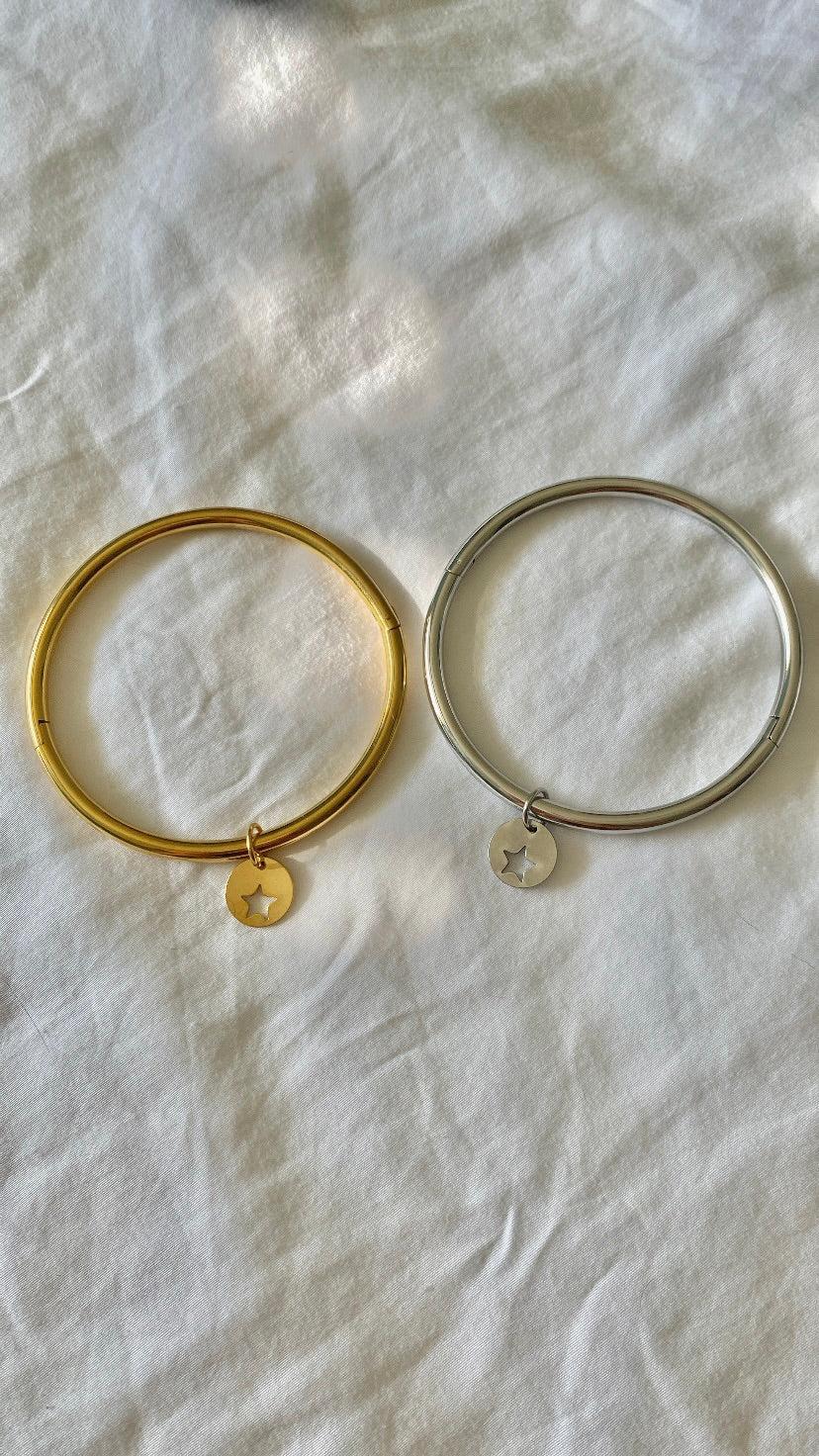 jonc Starly en acier inoxydable avec breloque petite étoile dans rond